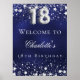 Un poster de bienvenida para una fiesta de cumpleaños 18. Un fondo azul marino con elegantes estrellas falsas de plata. El color azul es desigual. Personalice y agregue un nombre y un texto. Texto blanco.