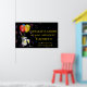 Cartel de póster de felicitación para una jubilación con estilo que presenta un cubo de vino espumoso, copas y globos sobre un fondo negro con confeti colorido en espiral.