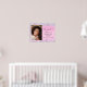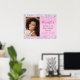 Póster de bienvenida de fiesta de cumpleaños dulce 16 bonito, glamuroso y femenino con su foto, confeti falso brillante holográfico púrpura, rosa y plateado a lo largo de los bordes contra un fondo rosa y su nombre en una escritura moderna gris suave.