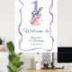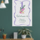 Tarjeta de invitación de cumpleaños con ilustracion acuarela número uno con flores silvestres y cinta morada.