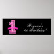 Bandera de fiesta de cumpleaños número uno con estampado de leopardo rosa y negro. Personaliza con cualquier texto. Artículos coordinados disponibles. El fondo se puede hacer de cualquier color.
