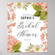 Póster de Fiesta de Despedida de Soltera con Hortensias Acuarela de Melocotón Rústico | Bienvenidos a los invitados con este cartel de bienvenida de fiesta de despedida de soltera floral. Un cartel de bienvenida de boda elegante con ilustraciones de acuarela de hortensias de melocotón, flores blancas y vegetación con un guión caprichoso. Este cartel de bienvenida botánico es perfecto para eventos de primavera e invierno.