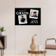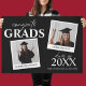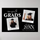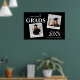Póster de bienvenida moderno para una fiesta de graduación doble, que incluye 2 fotos de los graduados. El póster tiene texto modelo que dice 'FELICIDADES GRADUADOS, SUS NOMBRES, AÑO DE GRADUACIÓN, y NOMBRE DE SU ESCUELA O COLEGIO'.