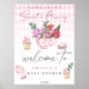 Póster Fiesta de té Flores Bienvenidos chica fiesta de du