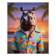 Gracioso hipopótamo usando una camisa hawaiana en una hermosa playa.