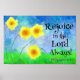 poster de cita inspiradora representa un diseño de girasol pintado a mano con flores artísticas amarillas y contra un cielo azul. Presenta la Biblia contra los filipinos 4:4, "Regocijarse en el Señor siempre".