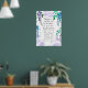 El inspirador poster floral representa una hermosa lavanda acuática y un diseño de glicinia azul. Presenta una porción de Biblia Verse Philippians 4:6-7, "Reza por todo; dile a Dios tus necesidades... Si haces esto, experimentarás LA PAZ DE DIOS, que es mucho más maravillosa de lo que la mente humana puede entender."-