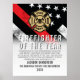 This design features a firefighter flag with black and white stripes, and a thin red line stripe as well. This poster is great for showing appreciation to a firefighter, lieutenant, captain, or chief for their service and becoming firefighter of the year.