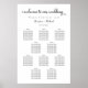 Este sencillo cuadro vertical de asientos en blanco y negro es perfecto para un boda elegante y clásico. Puede cambiar el color de fondo. Simplemente haga clic en el enlace personalizar adicional, que se muestra bajo el área de personalización de texto a la derecha, y elija el fondo de color personalizado. Este poster muestra la organización de los clientes sentados al lado de las mesas y tiene espacio suficiente para acoger a unos 80 comensales. Haga espacio para más (o menos) invitados haciendo clic en el botón "personalizar" y disminuya o aumente el tamaño del tipo de letra.