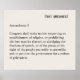 Text: Amendment I Congress shall make no law respecting an establishment of religion, or prohibiting the free exercise thereof; or abridging the freedom of speech, or of the press; or the right of the people peaceably to assemble, and to petition the government for a redress of grievances. Design description: text of the First Amendment of the United States Constitution. Customizable background color and font.