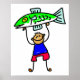 Un personalizado ilustracion caprichoso de un niño feliz con una figura de palo agarrando el pez grande que ha capturado mientras pescaba. Fácilmente personalizar y elige tu propio color de fondo o agrega texto. Imagen disponible en varios regalos y productos.