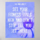 Este inspirador poster para la aptitud, el ejercicio, el entrenamiento y la motivación en el gimnasio cuenta con una cita inspiradora de fitness del diseñador y motivador Felicity Luckey de Great Minds Think Fit™. El poster de ejercicios es azul, violeta y blanco, con una margarita sobre un fondo de tela y una cita para la puesta en forma para sacarte del sofá y meterte en tus zapatos de gimnasia. Nuestros posters inspiradores de fitness son ideales para su casa, gimnasio, sala de estar, dormitorio, dormitorio o baño. Presentados juntos, nuestros posters hacen una declaración poderosa como decoración de fitness en las paredes de gimnasios, estudios de fitness, clubes de salud, clubes de fitness, vestuarios, gimnasios corporativos, centros juveniles, gimnasios de hotel y gimnasios. La cita inspiradora en este poster de fitness dice: ESTABLEZCA LOS OBJETIVOS DE FITNESS Y NO DETENGAS HASTA QUE LLEGES ALLÍ. ~ Felicity Luckey
