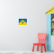 Poster with flag of city Mesa, Arizona; yellow and blue flag with stylized illustrations of desert, cactus and rising sun