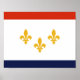 Poster with flag of city of New Orleans, Louisiana; white flag with red and blue stripes and three golden fleur-de-lys