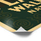 Afiche de viajes retro de Flagstaff, Arizona exhibiendo viviendas de acantilados de Cañón de Nueces. Antecedentes: espectaculares acantilados de cañones con antiguas viviendas de piedra construidas en las cordilleras rocosas, resaltadas por la cálida luz del sol. Zona intermedia: sinuosa ruta de madera que desciende hacia el cañón, con escasas plantas y árboles desérticos pegados a las pistas rocosas
