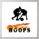 Flamando los aros de baloncesto con el fuego y las llamas y balones de básquet de acción uno sobre uno.