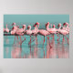 Aves salvajes africanas. Un grupo de flamencos rosados africanos deambulando por la laguna azul en un día soleado. Gran diseño para los amantes de las aves silvestres. Da una forma distintiva al diseño.