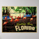 Una divertida colección de flamencos rosados en Florida son un símbolo perfecto de este soleado estado del sur. La imagen dice "Saludos desde Florida".