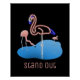 A glowing pink neon flamingo standing in a pond with a few real (cartoon) flamingos. Text says, "Stand Out," and is customizable.