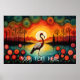 Póster Flamingo Bird Lake Sunset Colorido Floral