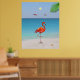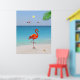 Póster Flamingo rosa coral y hoja de palma en la playa