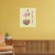Un poster con un flamingo de Navidades tropicales vestido con un sombrero de santa rosa. Bajo sus pies, se encuentra un ramo de caña de caramelos con flores tropicales de bonito y bayas rosas. Un brote de holly en el pecho.