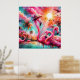 Póster Flamingos rosados tropicales Palmeras Agua Verde a