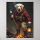 ¡El gran exterior se hizo más grande con el comandante a cargo! Este Labrador está listo para cualquier cosa en pantalones cortos de carga, botas y una camisa de franela roja. Con un malvavisco asando en una pata y una linterna brillando en la otra, está iluminando el camping —y los corazones de todos. Ya sea haciendo senderismo o vigilando los aperitivos, este poster es perfecto para los amantes de los perros que acampan como reyes (con perros que gobiernan el anillo de fuego).