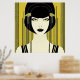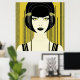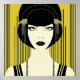Elegante Flapper Art Decó Vintage de los años 20. Negro y amarillo. Hermosa cara con bob de estilo de los años 20, franco, bangs. Disponible en otros tamaños. Elija su tamaño preferido de la lista desplegable.