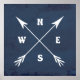 Ilustracion de brújula con flechas y decoración norte, este, sur y oeste sobre fondo de grano azul
