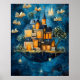 Step into a world where stories quite literally lift you away. The Floating House of Books is a whimsical fantasy art print featuring a magical house built from books, glowing warmly beneath a celestial night sky. Open books drift through the air like birds in flight, while soft golden lights illuminate the cozy windows of this enchanted literary sanctuary.