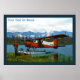 Un piloto de bush se encuentra cerca de su avión de Havilland Canada DHC-2 Beaver a la orilla de un lago en el extremo norte; montañas y árboles están a lo lejos. Personalizar agregando su propio texto. Esta imagen se derivó, en parte, de una foto del Servicio de Pesca y Vida Silvestre de Estados Unidos.