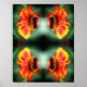 Arte abstracto de flor de zinnia naranja y amarilla soñadora creada a partir de mi foto original. Fotografía floral por Susan.
