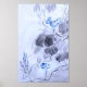 "Flor azul" es un cuadro de una gloria matutina de Birgit Moldenhauer. Está pintado en la técnica tradicional china de estilo libre con acuarela china y tinta sobre papel de arroz. Las glorias de la mañana se abren y cierran con el sol, simbolizando el amor fugaz pero sincero y la belleza que aparecen brevemente pero intensamente. En la cultura y el arte chinos, la gloria matutina, también conocida como qian niu hua, simboliza la felicidad conyugal, el amor y el afecto, a menudo representada a través de sus hermosas viñas. La asociación de la gloria matutina con el triste romance entre el pastor Niulang y el tejedor chica Zhinu, a los que se permite reunirse una vez al año, vincula la flor con el tema del amor restringido y el anhelo de reunión. En pinturas de brochas, las glorias matutinas se representan con trazos fluidos y elegantes para capturar la delicada belleza de su forma y los intrincados patrones de sus viñas retorcidas. Los colores vibrantes de las flores, como el azul y el violeta, añaden un toque de vitalidad y alegría a las obras de arte chinas, contribuyendo a un sentimiento general de optimismo