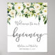 Utilice nuestro cartel de flor blanca y vegetación "Bienvenido a nuestro principio" para dar la bienvenida a sus huéspedes a la ceremonia de boda o a la recepción. La redacción es personalizable. Utilice la herramienta "Personalizar esta plantilla" de Zazzle para introducir su propia información. Si necesita cambiar la ubicación de los cuadros de texto, el color de la fuente o el tamaño sólo tiene que hacer clic en el botón "Haga clic para más personalizares" para cambiar esas cosas. No olvide visitar nuestra amplia selección de elementos de coordinación, ya que puede visitar la colección de Bodas Florales Blancas Modernas.