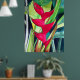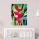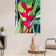 De la pintura original de una flor acuarela del artista Sacha Grossel de una exótica flor tropical Lobster Claw Heliconia, que se encuentra en Sudamérica y las islas del Pacífico tropical. Esta maravilla botánica de flor de color rojo brillante, llamativa y con un diseño floral único e inusual. El follaje es verde tropical fresco con hojas similares a las hojas de plátano.