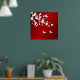 Póster Flor De Cerezo Blanco Y Negro Rojo