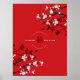 Flores de cerezo rojas o Sakura flores de primavera y doble felicidad simple Letrero / cartel / impresión de boda china.