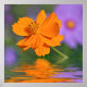 Cierre de la flor cosmos naranja sobre el agua con reflexión, efecto digital
