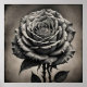 Flor de rosa blanca y negra con tallo y hojas dibujos de arte de carbón.