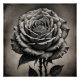 Flor de rosa blanca y negra con tallo y hojas dibujos de arte de carbón.