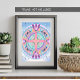 Una imagen de mandala vibrante, simétrica e intrincada, con patrones y formas coloridas abstractas, mezclando elementos de naturaleza y fantasía. Los colores luminosos y las formas geométricas se entremezclan para crear una composición visualmente cautivadora y armoniosa.