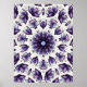 Mandala poster de flores con un patrón caleidoscópico creado a partir de una acuarela y un dibujo de tinta de una flor de loto abstracta en azul, violeta y negro.