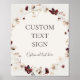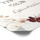 Este cartel personalizado de flor silvestre borgoña | tarjetas y regalos beige es perfecto para su boda clásica rústica boho óxido, blanca, marsala. El diseño presenta una corona o ramo bohemio de flores silvestres modernas de acuarela en color púrpura, rojo, gris y rosa junto con follaje de color naranja quemado y dorado. En el diseño se presentan amapolas y cebada. El diseño es ideal para una boda de jardín campestre de otoño o verano, primavera simple y minimalista. Por favor, busque otros artículos de papelería de boda que coincidan o coordinen en el resto de esta colección.