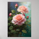 Poster artístico que ilustra la belleza natural de los rosas al estilo de una pintura al óleo