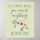 Poster de Concienciación contra las Drogas. El mensaje de 'no a las drogas' se sienta en un suave fondo verde y dice "En un mundo donde puedes ser cualquier cosa. Estar libre de drogas". El lema está escrito en letra elegante con letras a mano y tipografía en mayúsculas. El poster está decorado con una acuarela floral de flores color rosa bonito y marfil.