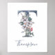 Póster Floral azul acuarela Monograma T Poster de apellid