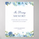 Póster Floral Azul Dusto En El Rótulo Boda De Memoria Ama