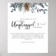 Bienvenidos a su ceremonia con este exclusivo y elegante cartel de la Ceremonia Unplugged. 8" x 10" es simplemente un ejemplo, usted puede elegir entre una variedad de tamaños más pequeños y grandes. Delicado diseño floral acuático sobre tonos azules, pizarra, salvia y rojizo. Uso de caligrafía escrita a mano. Productos de coordinación disponibles.