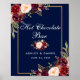 Póster Floral Burgundy Blue Boda Hot Chocolate Bar
